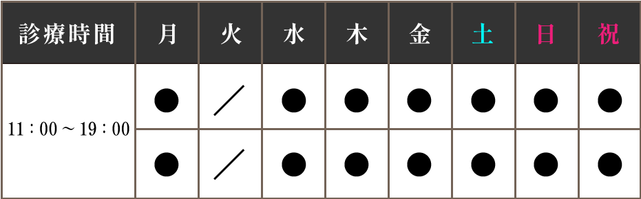 ◆ 最終受付: 診療終了時間の30分前